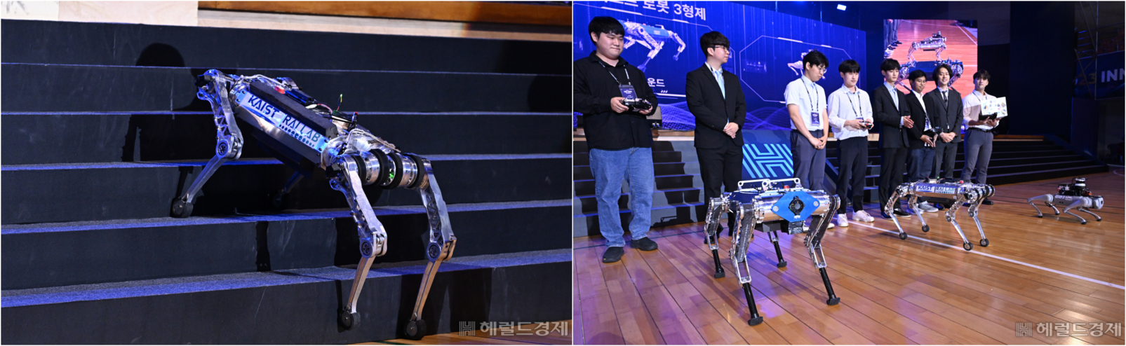 The 2023 Innovate Korea event was held under the theme of “Our Future” with a number of famous Congressmen, KAIST presidents, and Ncsoft president. Raibo participated in the event as three KAIST robot brothers. Raibo quickly climbed up and down a 20cm-high stairs and perform 2m/s high-speed walk successfully at demonstration.